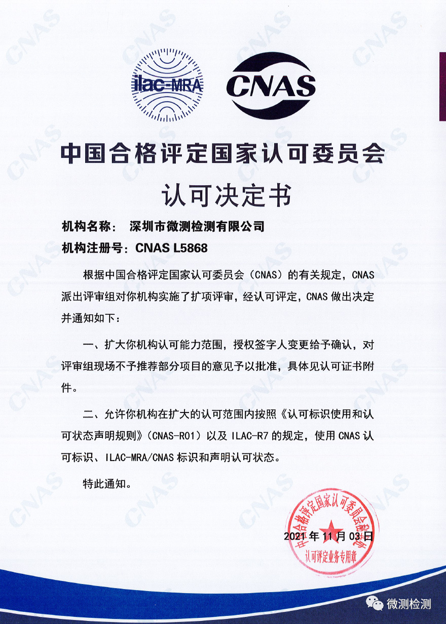 此次成功擴項是微測檢測團隊專業(yè)技能的提升,也是微測檢測行業(yè)實力的體現(xiàn)。微測檢測團隊將以此次評審為契機,持續(xù)規(guī)范實驗室的管理、不斷提高校準(zhǔn)能力和技術(shù)水平,更好的服務(wù)于廣大新老客戶朋友。